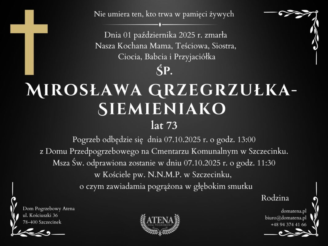 Dom Pogrzebowy ATENA to firma z rodzinną tradycją, prowadzona przez Dariusza Syczewskiego i Krzysztofa Niezgodę. Dysponujemy bogatym doświadczeniem uzyskanym przez ponad 20 lat działalności w branży pogrzebowej. Możecie Państwo liczyć na naszych profesjonalnych pracowników, którzy udzielą pomocy w kwestiach formalnych, organizacyjnych oraz doradzą przy wyborze odpowiednich akcesoriów pogrzebowych. Poprzez indywidualne podejście wspieramy rodziny i przyjaciół tych, których niestety nie ma już z nami.